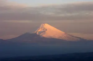 あわてて2階に上がってお山を見ると雲の合間から見えています。