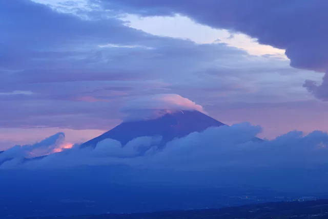 (最低気温 23.1℃:昨日の最高気温 : 26.9℃ )連日大雨が続いています。お山もずっと見えなかったのですが、お昼前にほんの30分ほどの間、大きな笠をかぶった姿が見えました。 2020-07-08_11-26-45<山頂の天候>