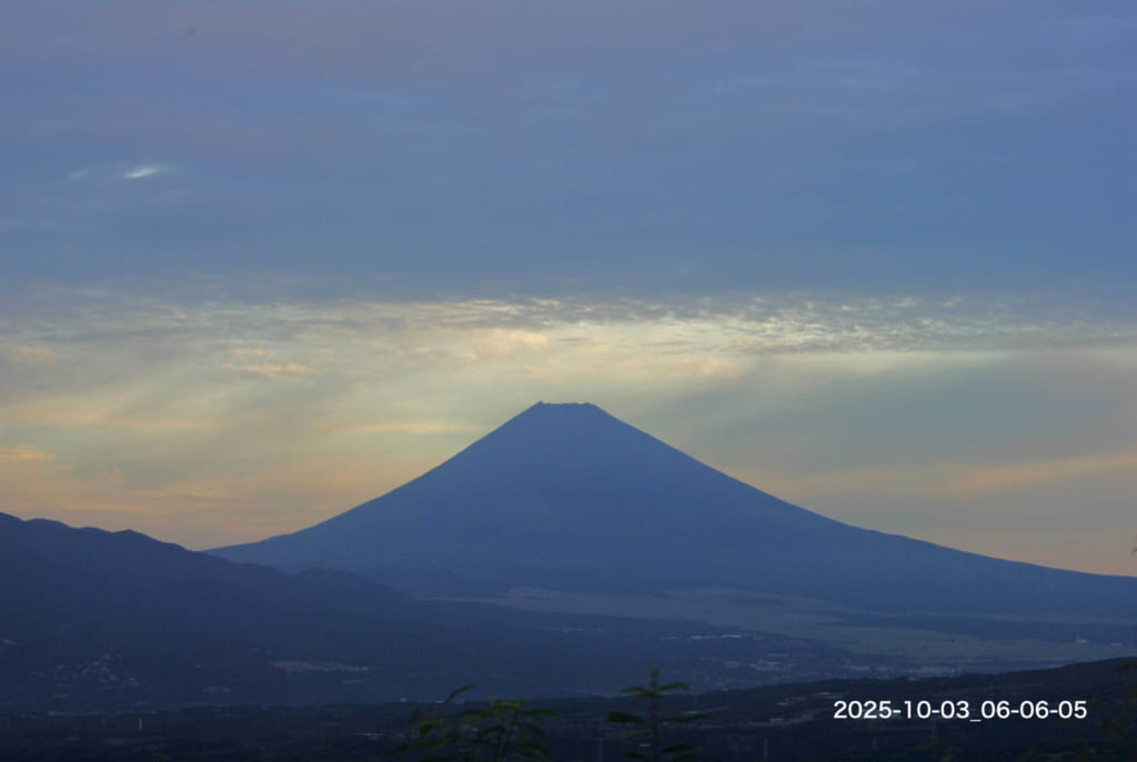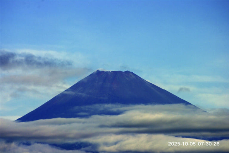 Today’s Fuji-san : 03/Oct/2025 Published 2025年10月3日 Modified 2025年10月3日 Author tamma Categories けさの富士山(今朝の最低気温 18.8℃:昨日の最高気温 21.7℃ )朝7時頃には青空が見えていたのですが、その後すっかり曇ってしまいました。昨日は山頂の最高気温が初めて氷点下でした。