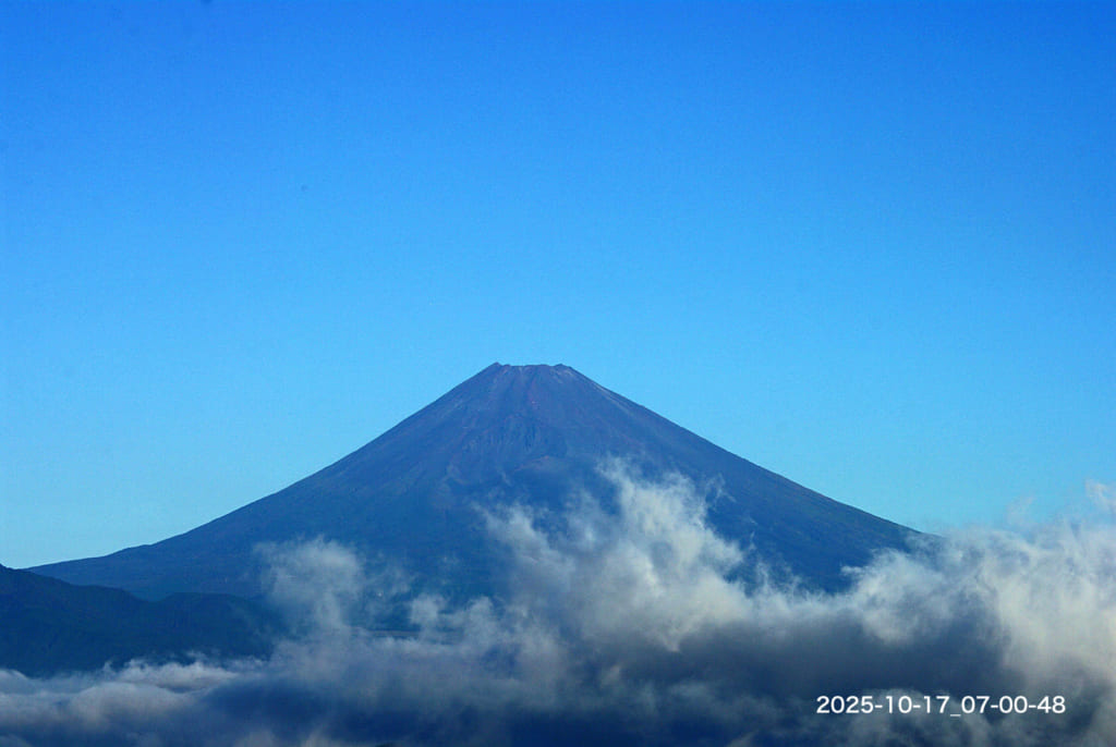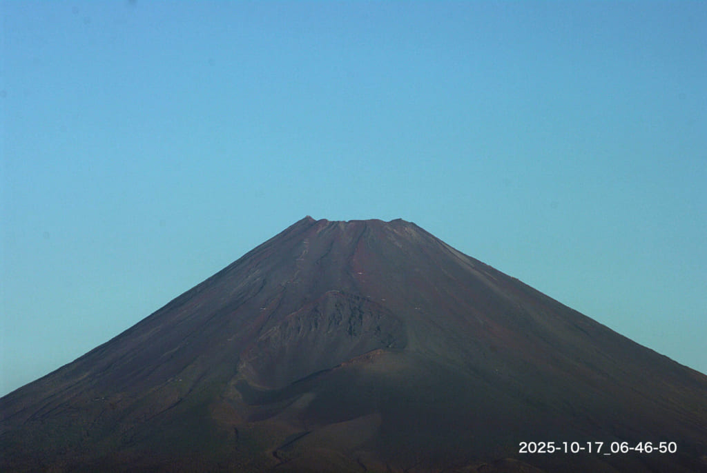Today’s Fuji-san : 17/Oct/2025 Published 2025年10月17日 Modified 2025年10月17日 Author tamma Categories けさの富士山21.8(今朝の最低気温 17.7℃:昨日の最高気温 21.8℃ )ようやく晴れましたが、冠雪はまだのようです。