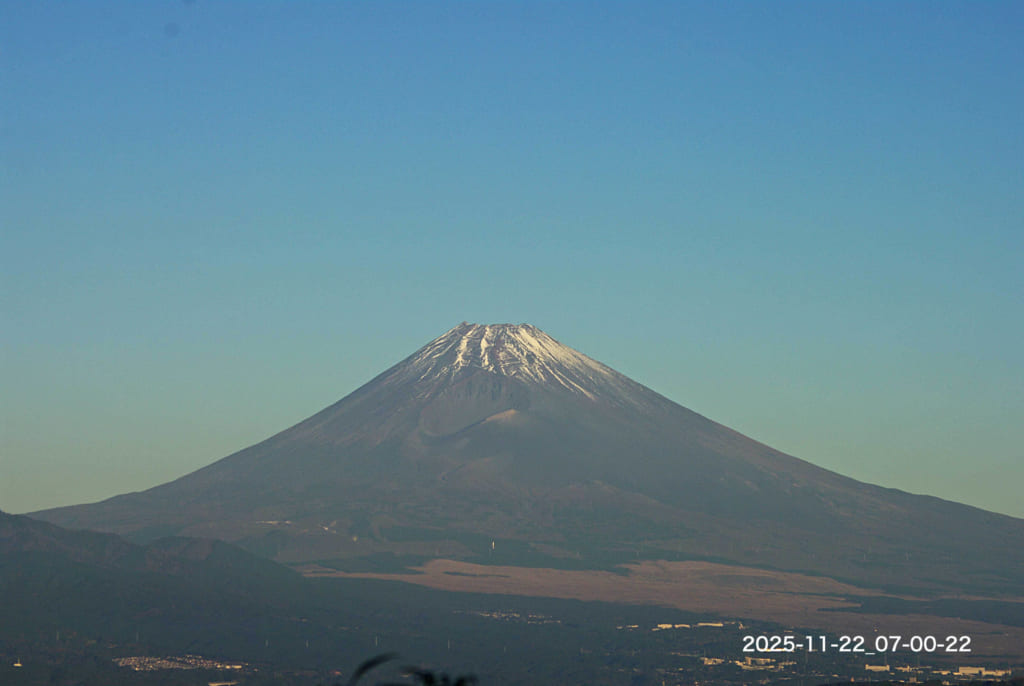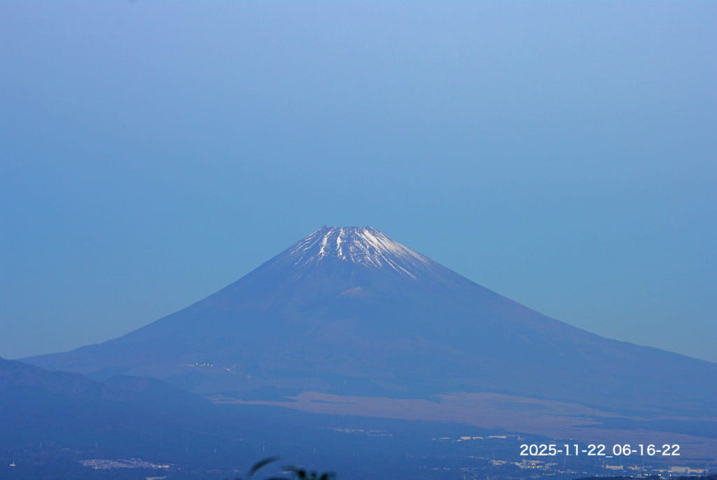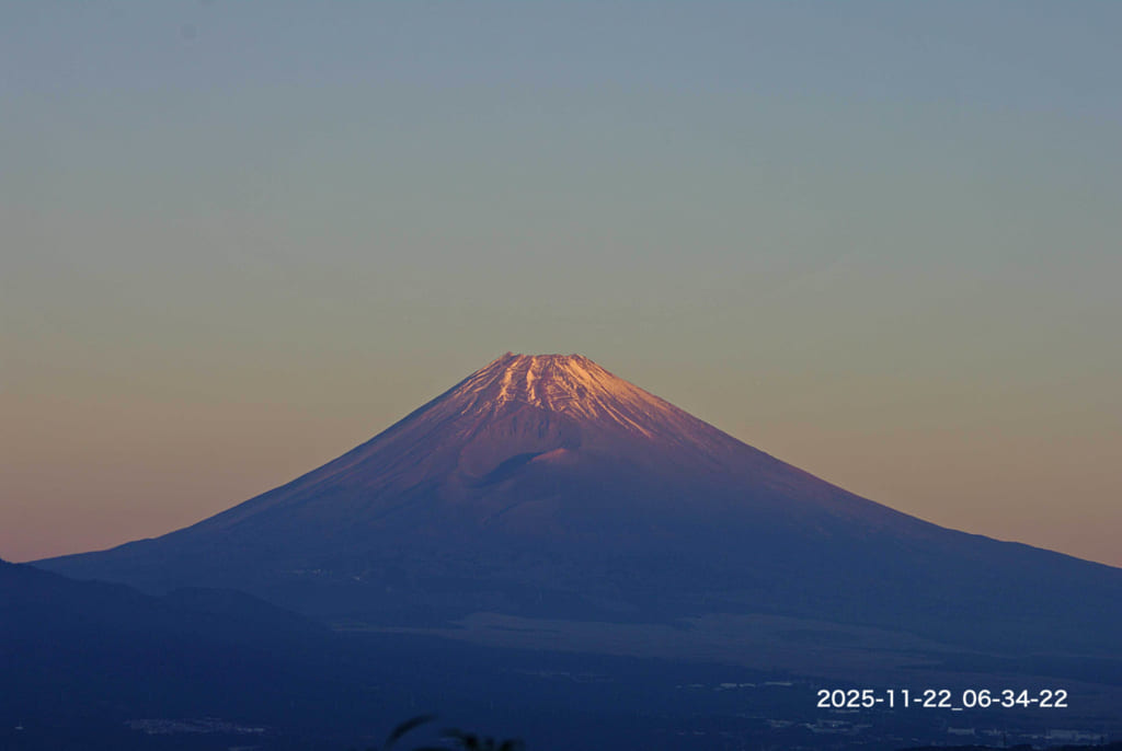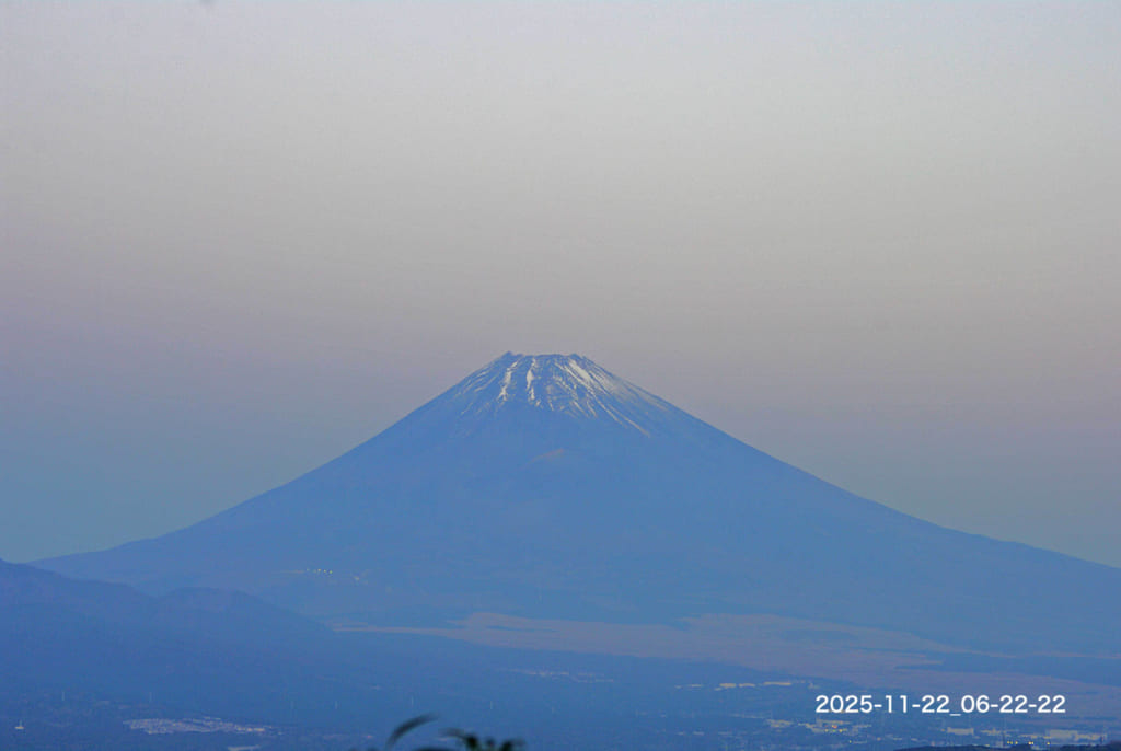 Today’s Fuji-san : 22/Nov/2025 Published 2025年11月22日 Modified 2025年11月22日 Author tamma Categories けさの富士山(今朝の最低気温 6.1℃:昨日の最高気温 12.5℃ )今朝も穏やかな夜明けです。全体にモヤッとしていて鮮明さに欠けるのが残念です。昨日の散歩中に出会った紅葉