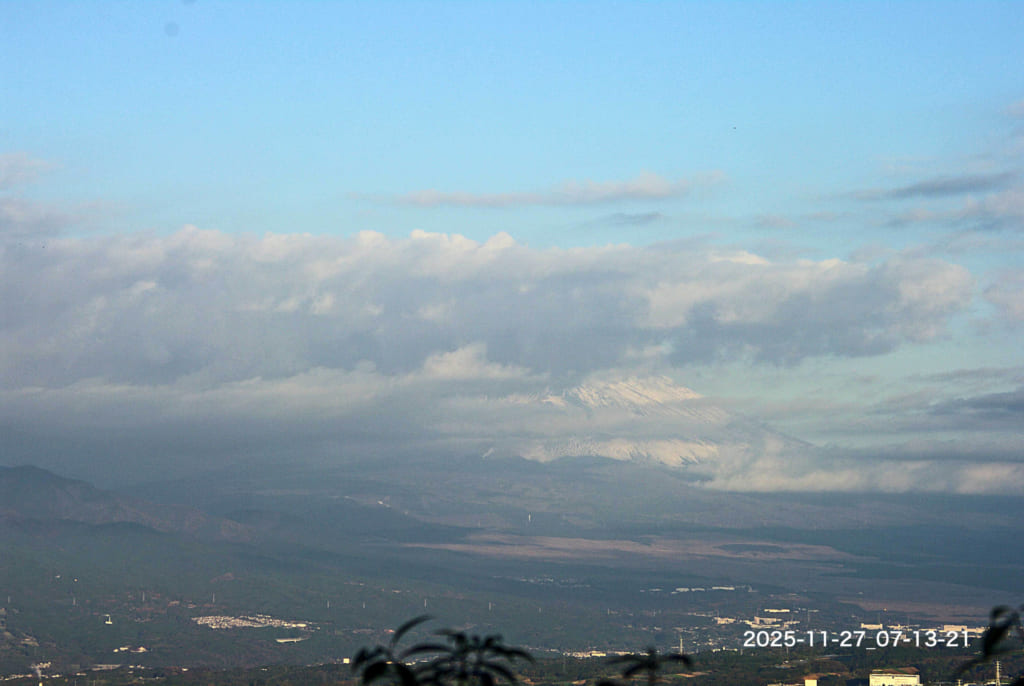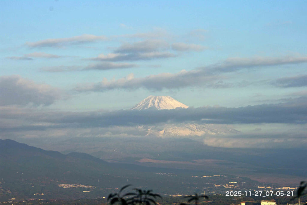 Today’s Red Fuji-san : 27/Nov/2025 Published 2025年11月27日 Modified 2025年11月27日 Author tamma Categories けさの富士山(今朝の最低気温 8.0℃:昨日の最高気温 13.5℃ )今朝も雲が多くて全身は見えません。低い雲が次々と西から東に流れています。