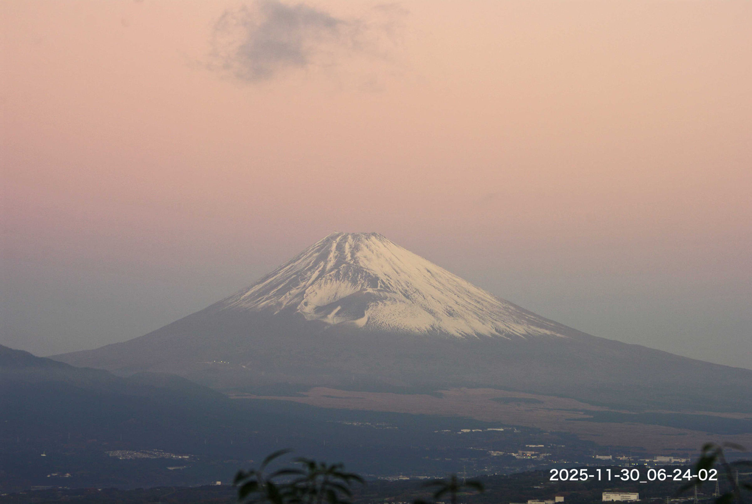 (今朝の最低気温 6.5℃:昨日の最高気温 13.0℃ ) 晴れてはいますが空全体が薄くもやっています。そのために紅富士もイマイチで、日の出前の空の色が綺麗です。