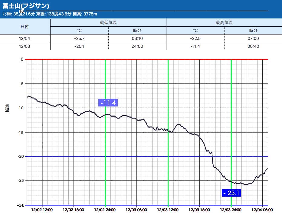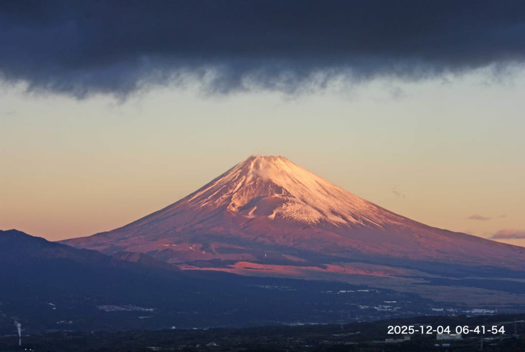 Today’s Red Fuji-san : 04/Des/2025 Published 2025年12月4日 Modified 2025年12月4日 Author tamma Categories けさの富士山 Categories 紅富士(今朝の最低気温 2.6℃:昨日の最高気温 12.4℃ )今朝は 2.6℃ まで下がりました。山頂の今朝の最低気温は -25.7℃ でした。
